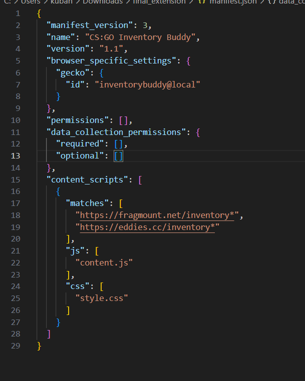 In my manifest i have "data_collection_permissions" to "none".. Uploaded my manifest screenshot, can you please help me get this working.