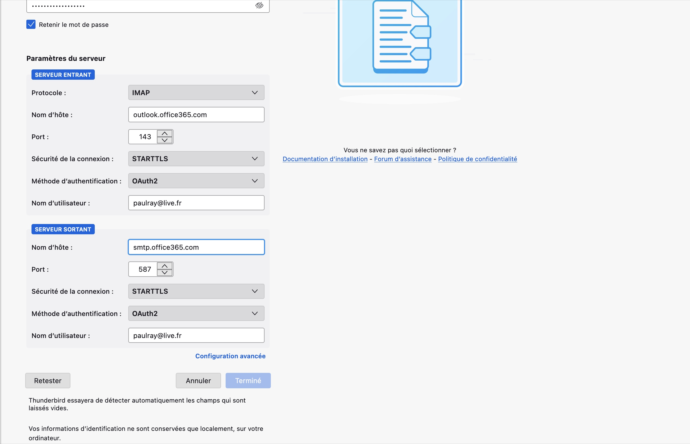 Are you adjusting the setting? You have incoming as port 587 and STARTTLS. The setting is 993 SSL/TLS Please try again
