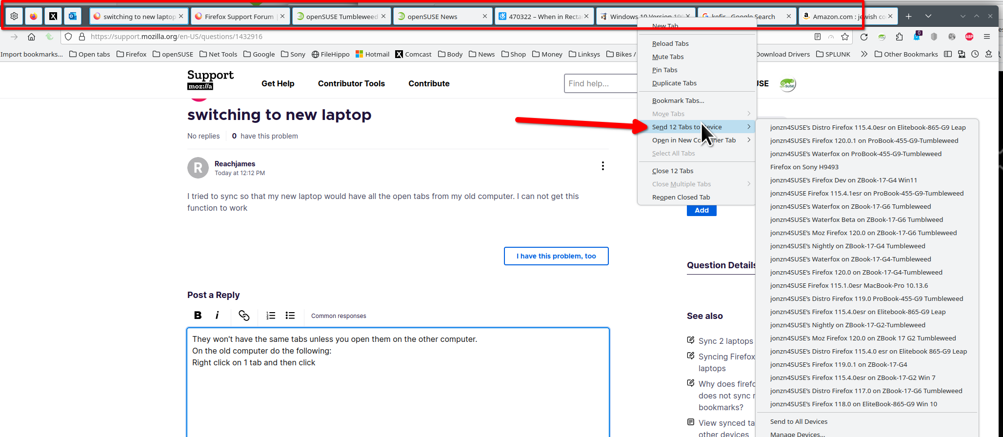 I've refreshed the syncing a few times but the MacBook is still showing two lots of tabs for the iMac, and both of them are showing pages that are no longer open.