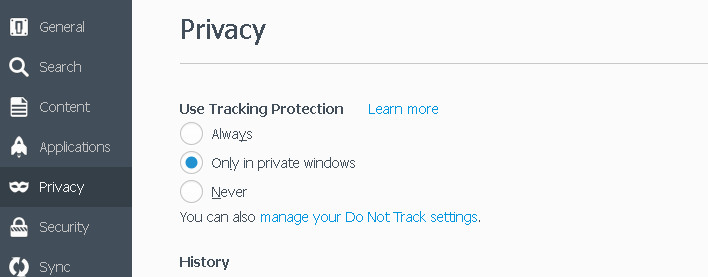 First there's the "Do No Track in Private windows" option.
