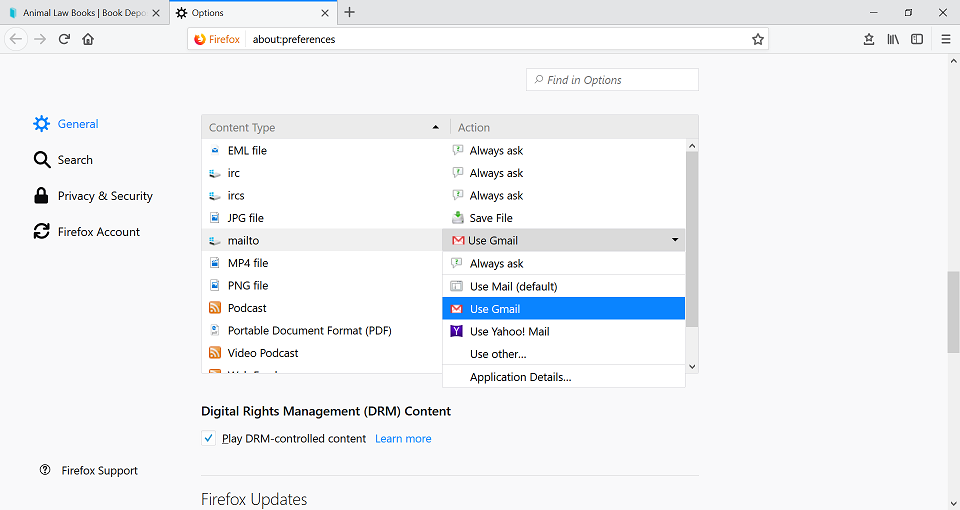 No Mailto option in "Applications." How do I make Gmail my default for email links?
