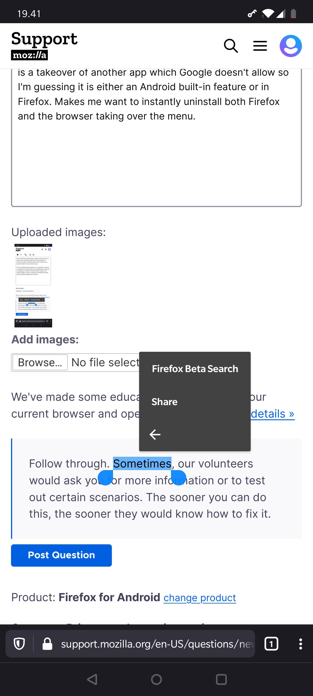 Is this something Firefox allows or is it Android? To me this is a takeover of another app which Google doesn't allow so I'm guessing it is either an Android built-in feature or in Firefox. Makes me want to instantly uninstall both Firefox and the browser taking over the menu.