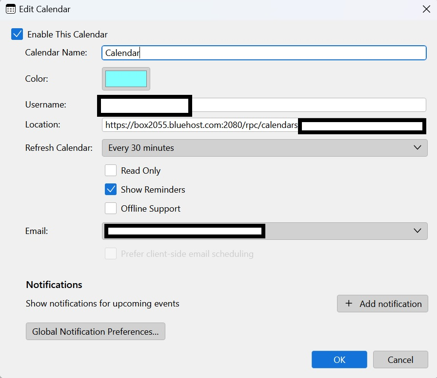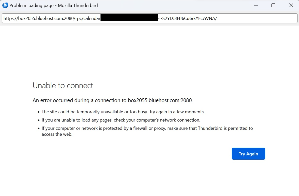 Yes, and I believe (though I can’t prove it) that the problem is because of Bluehost, but they say that it’s a Thunderbird issue. Also, that because I’m using IMAP that the calendar is stored locally on my machine.