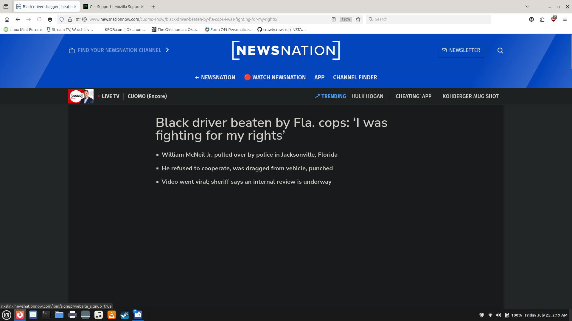 When I select Dark Theme, I DON'T wanr to see this. I just noticed this on my Linux Mint desktop machine tonight when I logged in. I also have Dark Reader installed and it isn't affecting ioit eitherit either. Make this go away. It burnsssssss!