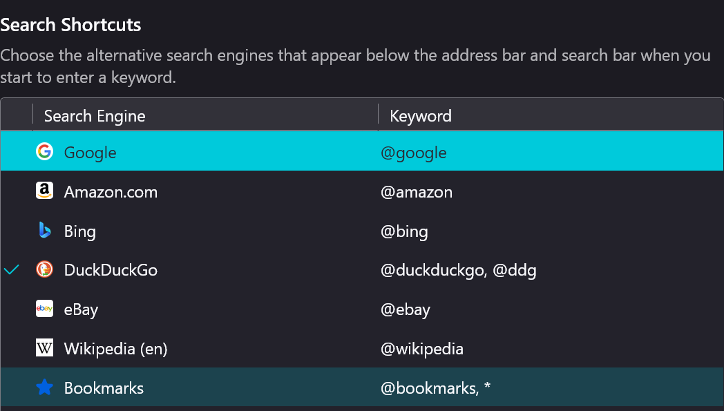 Search Shortcuts Make Sure You Already Set Duck Duck Go as Defaut Engine unheck Google Then Remove Google