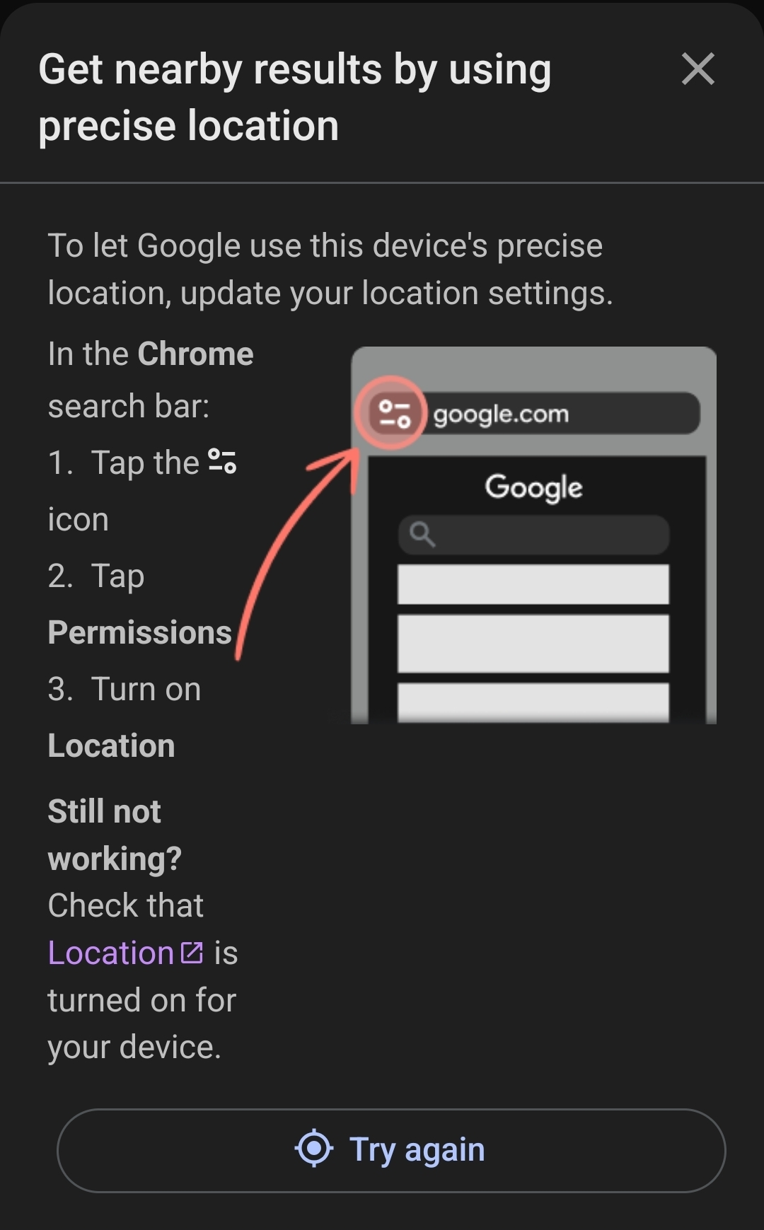When searching on the mobile Firefox browser for a location or Services near me the Google Maps in the browser is unable to find my precise location despite having location settings enabled on my phone and in the Firefox browser. When I click the use precise location tool tip to get assistance in the browser, it only shows me how to solve this via Chrome browser. Is there some sort of setting I am missing or is this a consistent issue?