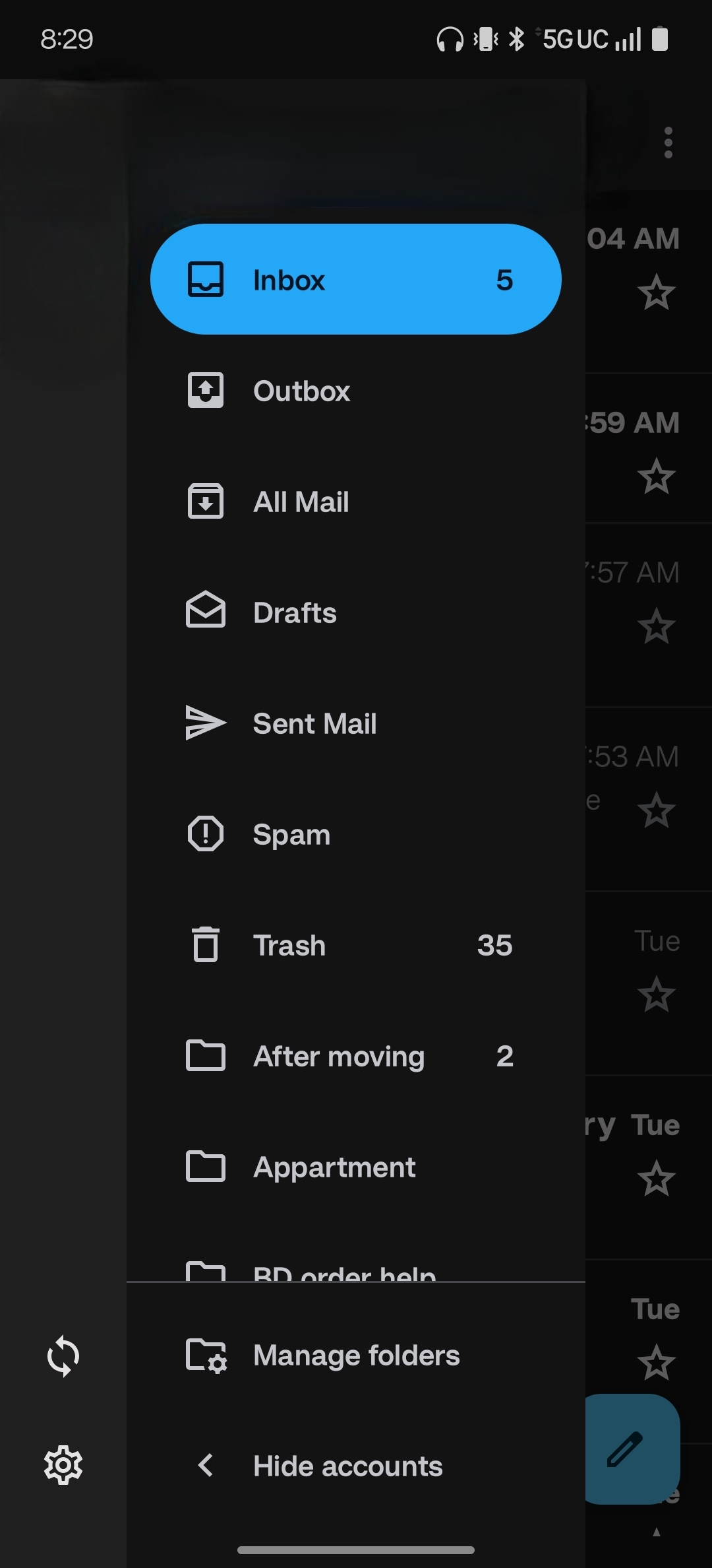 For some reason on the app it switches between two layouts for my gmail account. From the photos I attached a drop down menu that says gmail is present in one of them but sometimes when I go to open the app sometimes it will just show it fully with out the gmail part.