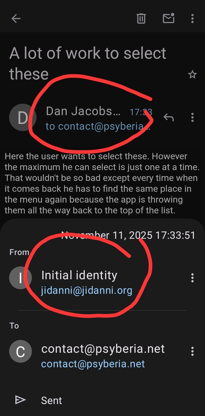 I'm a user like yourself. If I understand your point correctly, the app doesn't make it clear which identity has or was selected when composing or viewing sent mails.