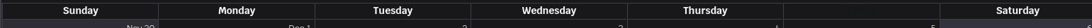 Hello, In Tbird 145, my calendar does not show the column header for the weekday 'Friday'. All six other headers are displaying correctly. This is also occurring when 'Workweek days only' is selected. Thank you.