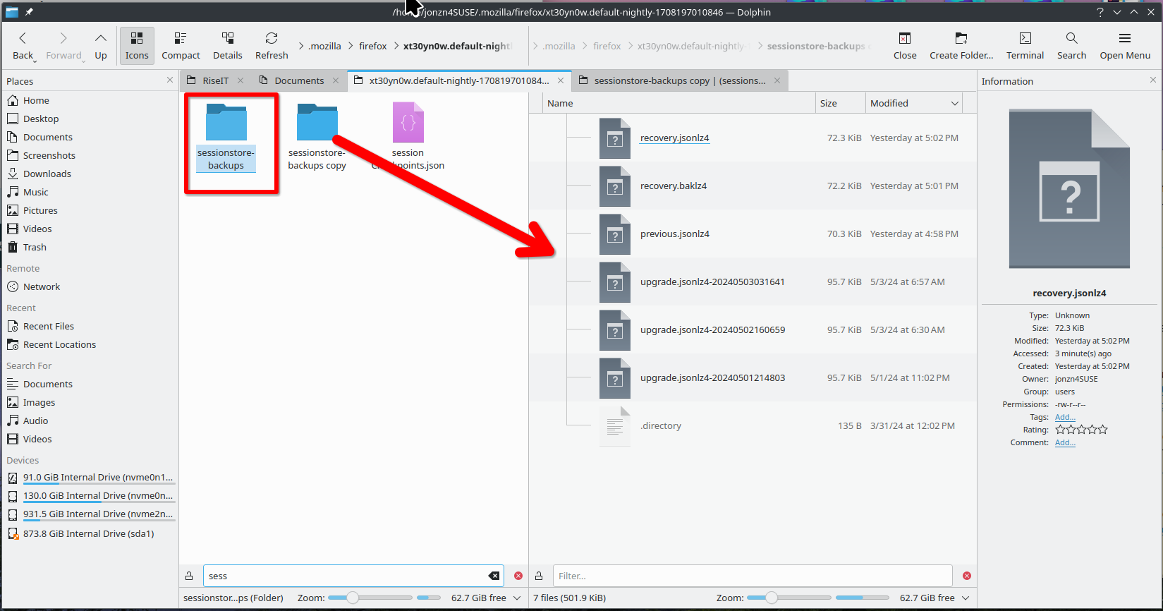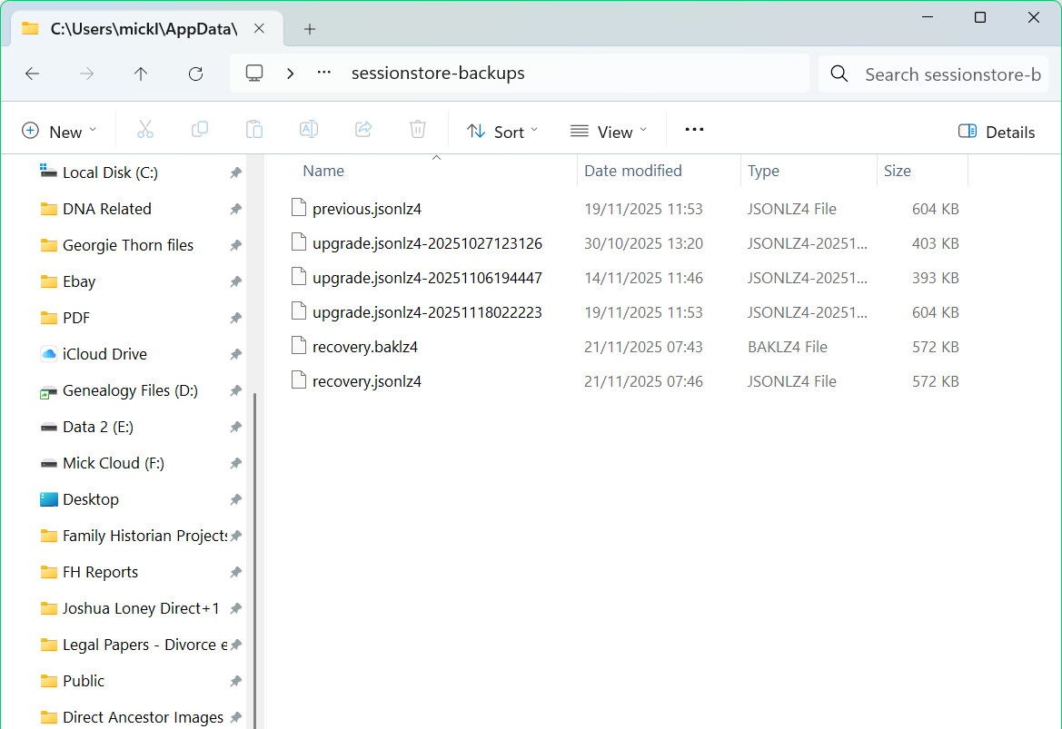 Yes, it's automatic, but it has been reset by restarting or browser updates which is why I make a copy of the folder. see old screenshot I assume your issue happened on the 14th. With Firefox closed, you can make a copy of the file with from the 14th(in your screenshot)and also the one from October. Then change the name of the newly copied file to sessionstore.jsonlz4. Remove the current file with the same name in your profile folder and then move the new file into the profile folder. Open Firefox and see if it restores your session. If the file from the 14th doesn't have the session you're looking for, then you can go back in time going through the same steps with the file from October. The 2nd screenshots is just an old example of the process.