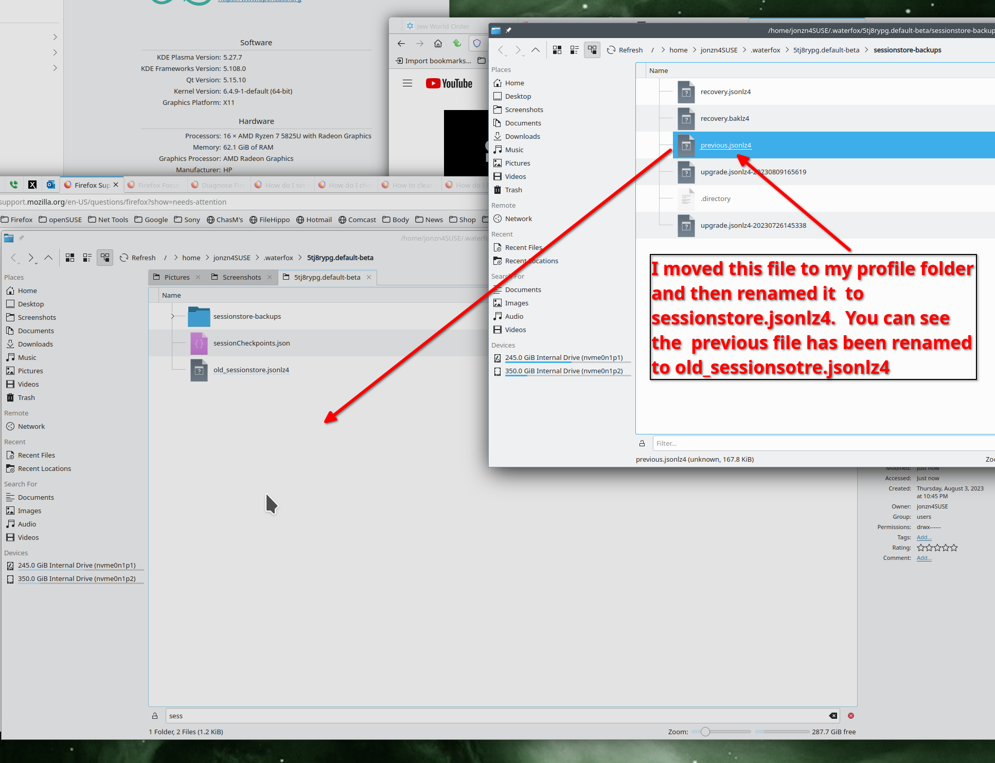 Q1. Are my normal tab settings recoverable? Q2. Why did Mozilla think it a good idea to open a new instance of Firefox to send me information, rather than simply open a new tab.