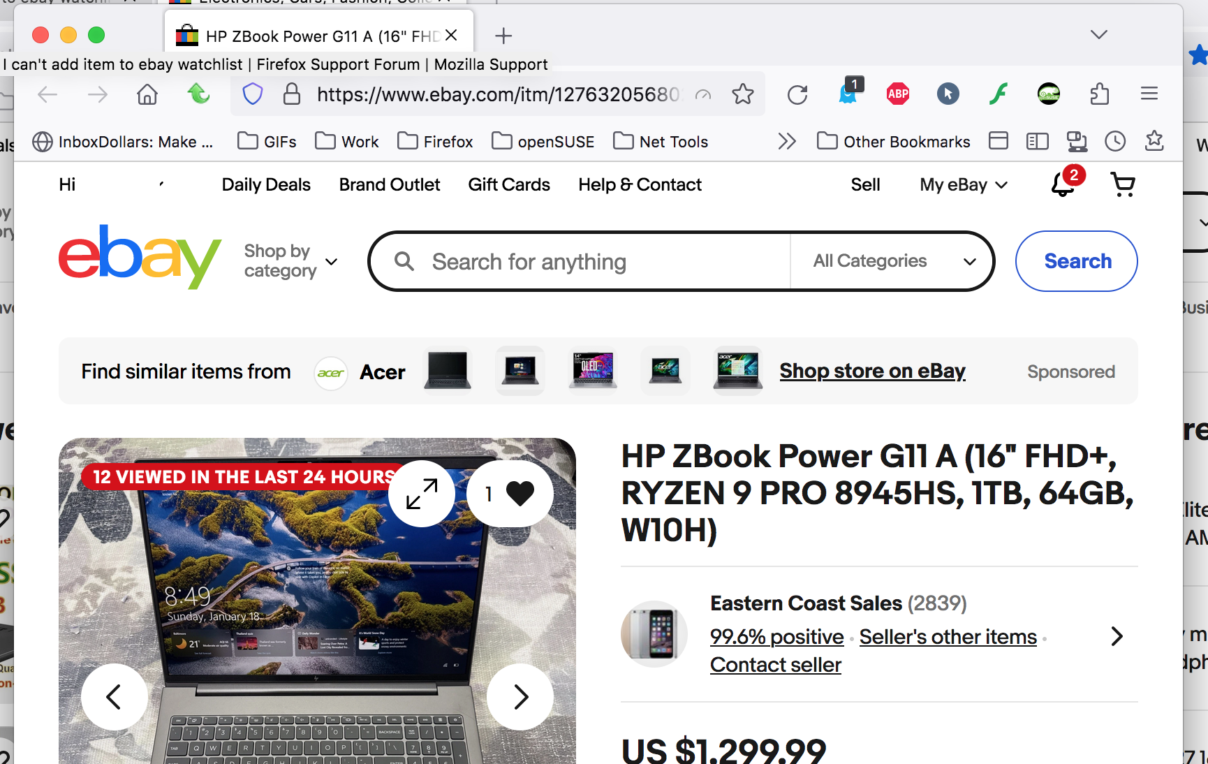 I can't add item to Ebay watchlist, able to with Chrome, tried clearing, resetting and updating, no luck, any suggestions? Thanks