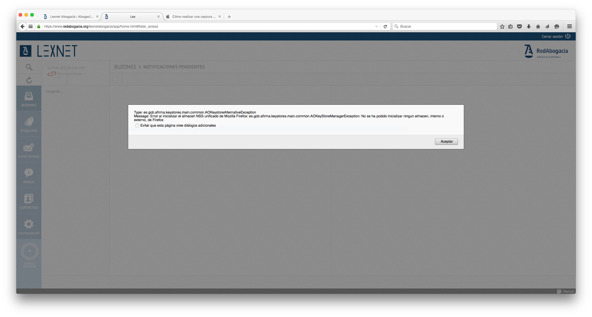 Tengo problemas a la hora de cerrar Firefox, y de ejecutar Java. He probado desinstalando ambos, y volviéndolos a instalar e incluso desinstalando el software del MAC y volviéndolo a instalar (El Capitán). En determinadas páginas me da el siguiente error (ver imagén).