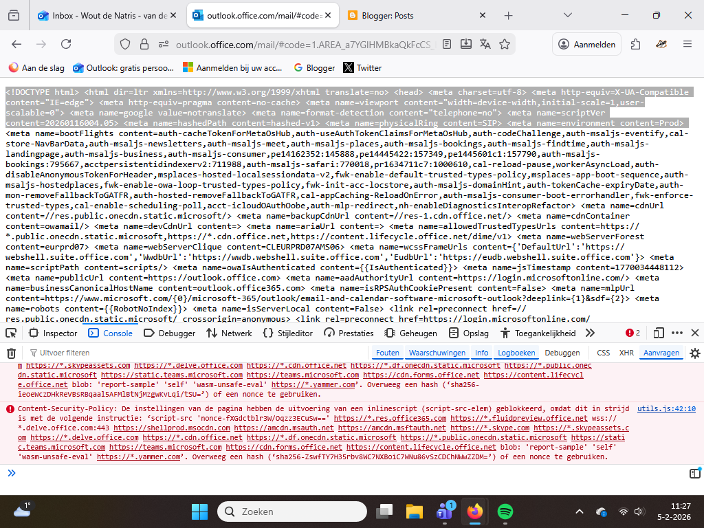 Since Monday my account (as logged in with here) is stuck in HTML mode. It happened after an email would not open and I used the back arrow to go back to my inbox. Instead of arriving there, I got the html code. I've tried several options advised by Microsoft 365, to no avail. My sys admin said it was most likely a browser issue, so I hope you can help me with the action to get my account back. The issue is only on my desktop and I can access the account there using another browser. See attachement as example. Please advise.