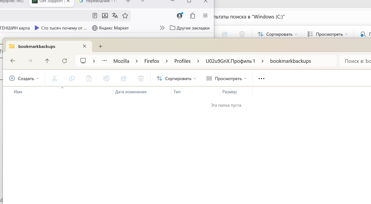 My computer shut down. I turned it back on, and the browser was completely updated. Nothing! I'm panicking. There's not a single backup anywhere. there is no folder on the desktop «Old Firefox Data» I don't know what to do I tried to restore bookmarks, but the list only showed other browsers.