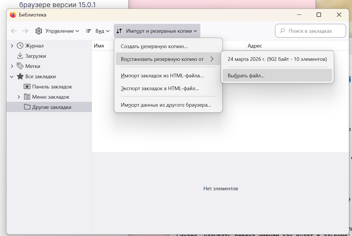 Your bookmarks from the selected date should now be restored.