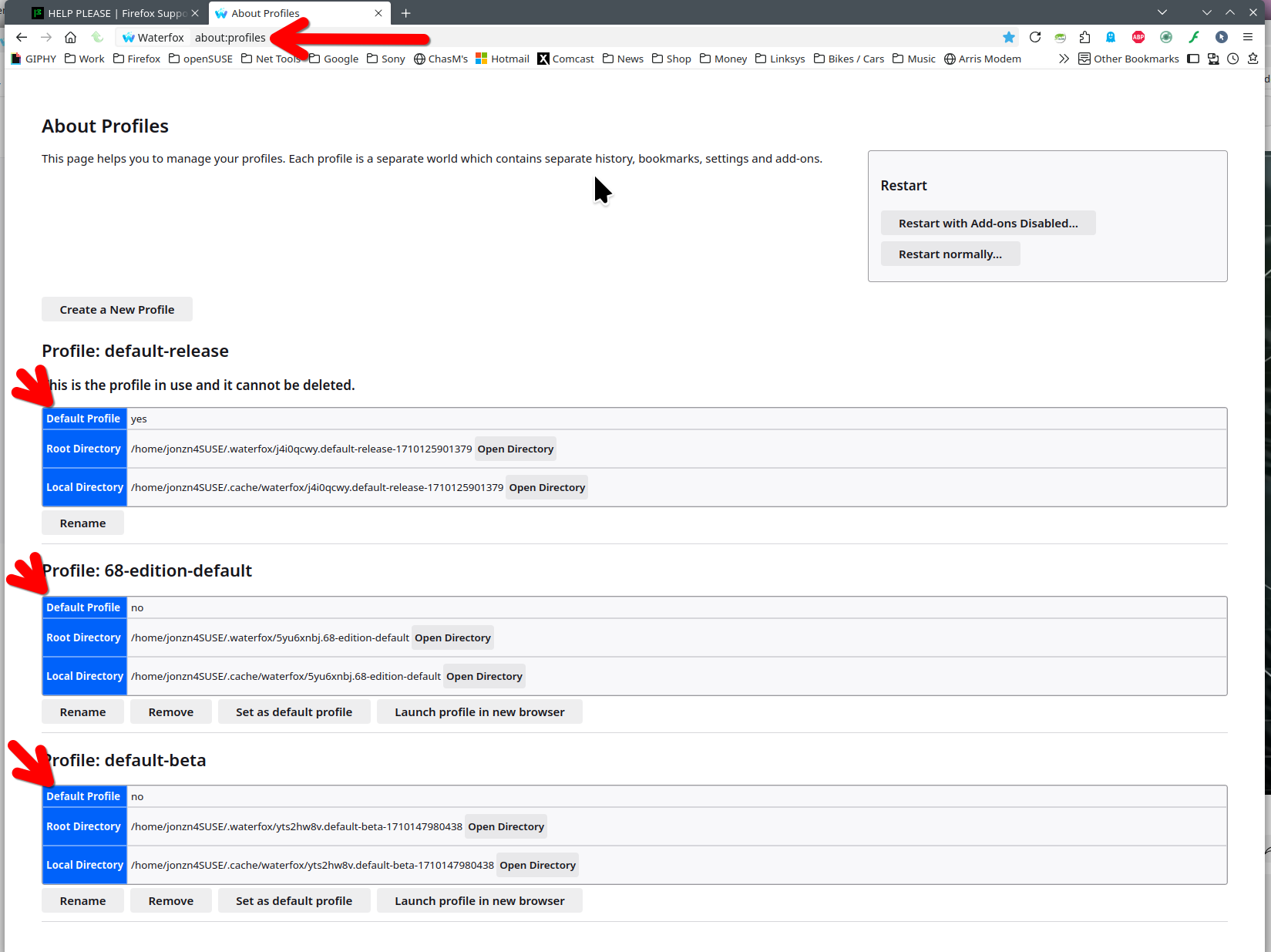 Profile 1 is empty I open Profile 2, and it's also empty Profile 3 is a recently created profile. I tried to restore the tabs, but it didn't work.