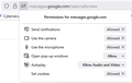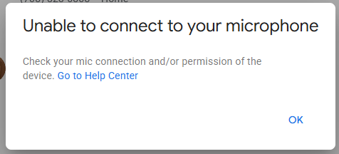 I'm having the same (or at least a very similar) problem. I use Google Messages to place calls. Has worked fine for the last few years. In the last 24 hours, I'm getting the error that the page is "Unable to connect to your microphone" (see image 1). However, looking at the permissions for the page, use microphone is clearly enabled (see image 2).
