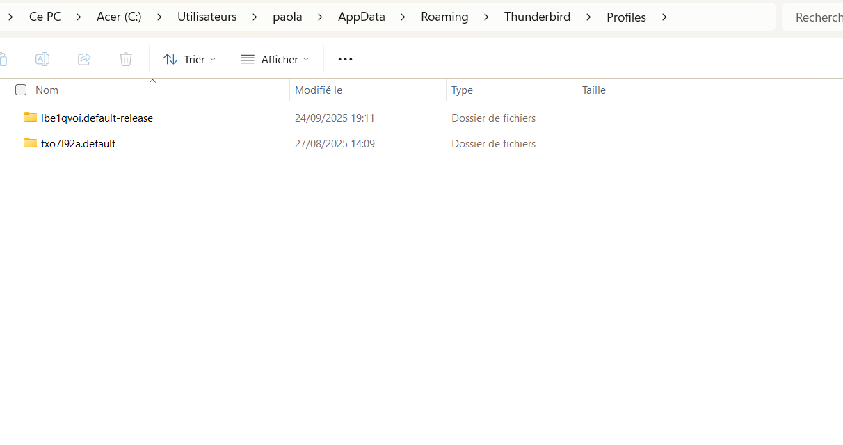 Here are the anomalies I’ve noticed: - There are two profile folders in the data directory - I have two trash folders: one labeled "Deleted Items" and another local folder called "Corbeille" - I see multiple ghost folders with no emails inside but only in thunderbird app in the laptop, I've got no problem in android app. And here are the screenshots