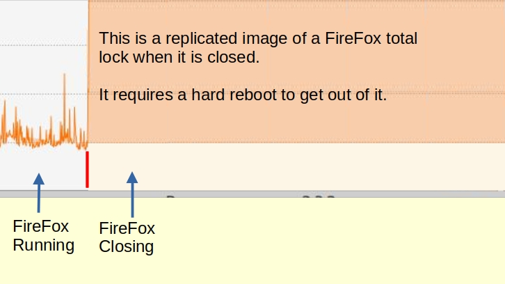 It also had a tendency to lock up on closure after a days running.... AND so I switched to turning Firefox off every 8 to 12 hours or so.... and it still did it about 50% of the time.