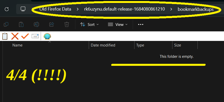 2) "Old FF Data" contains another Autosave from 2023, you will see in Att.2. Those are the ancient Bookmarks from 2022 that I mentioned (which I also saved manually in 2023 and accessed this April, looking for a few old saves - wish I'd taken the same precaution and done the same extra manual save (despite reassurance!) this time. I was frazzled and under pressure that day .... & by default, "trusted the machine" ...)