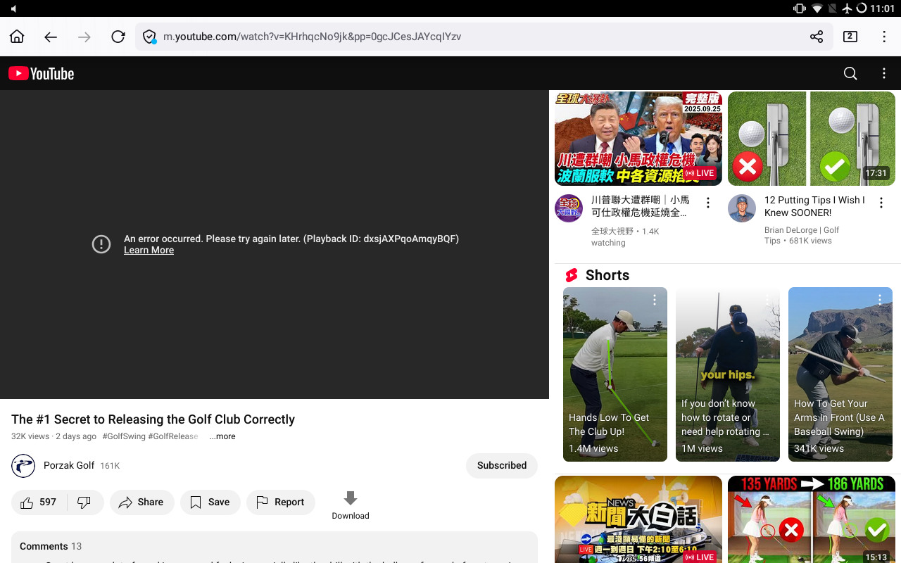 From 3 days ago suddenly I could not play YouTube videos as before (I could still play YouTube live stream) on my Samsung tablet. In the player window it said that there's a play error. Do not know what's the problem.