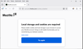 Using my Firefox browser I tried to login to mozilla account and I get the message "Local storage and cookes are required". I unblocked all cookie settings but have the same problem. I am able to log in using my MS Windows Edge browser, which I am presently using for this post.