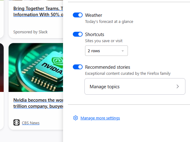no shortcuts appear on the firefox opening page