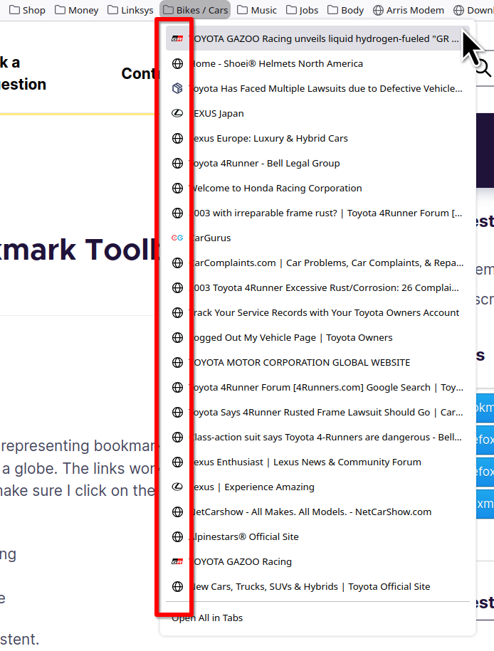 Unable to Reinstante Missing Bookmark Toolbar Icons
