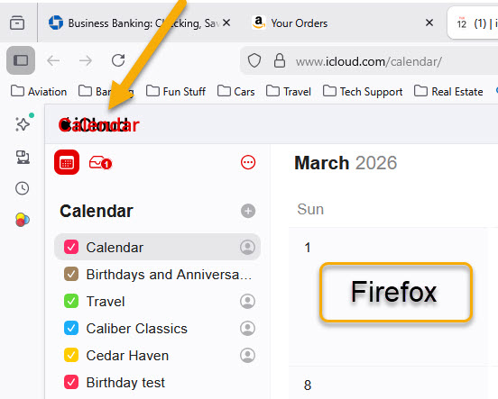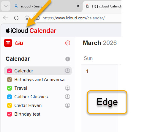 Everything has worked just fine in the past. Here are the basics using Edge... -The home page displays like the first attachment. -Clicking an icon takes me to the calendar page (see the Edge screenshot in the second attachment) -Clicking the word, 'iCloud' (see yellow arrow in second attachment) returns me to the home page.