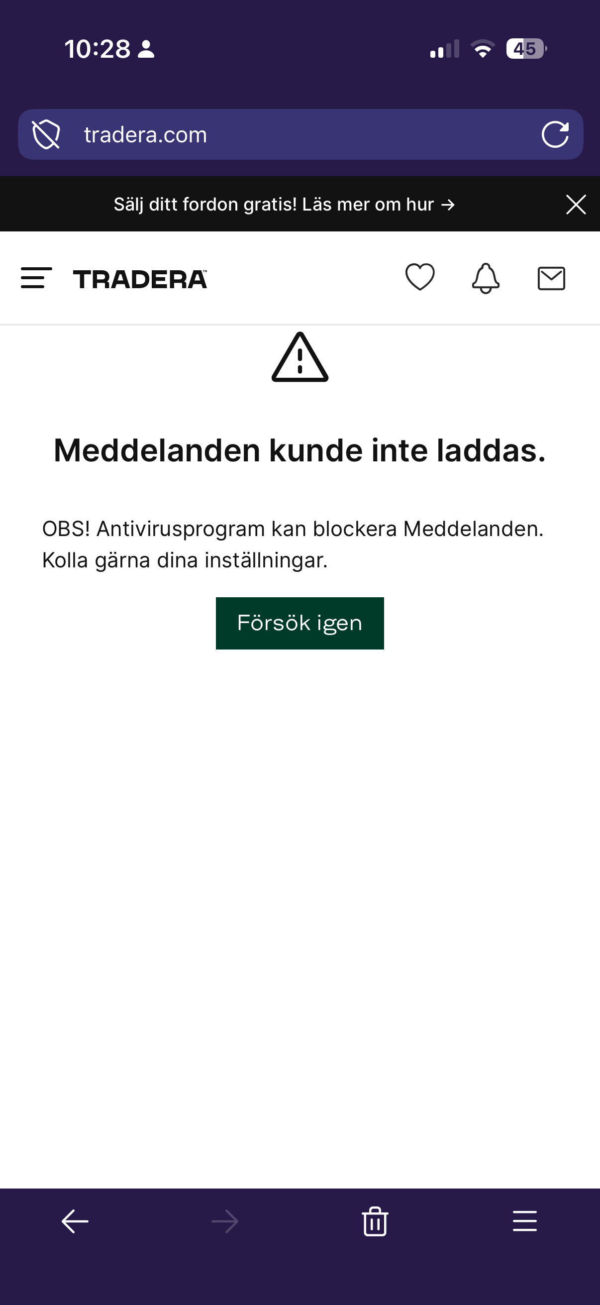 Private Messaging broken on tradera.com (due to Focus ad blocking?)