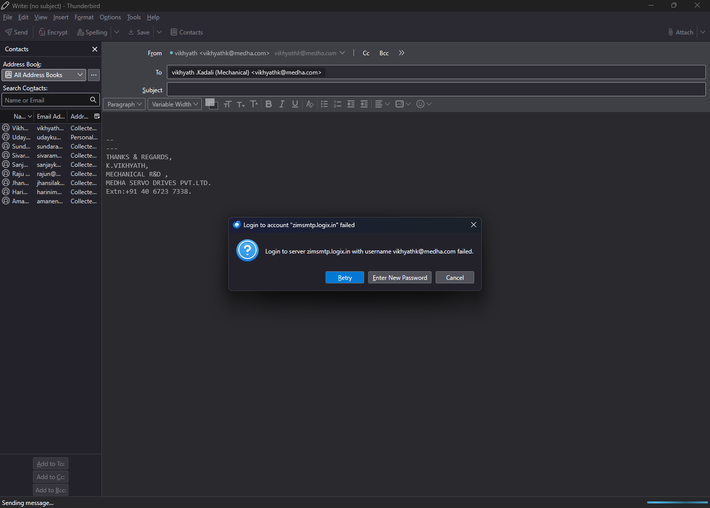 I am totally frustrated with Thunderbird. All I want to do is send and receive email, but I always run into problems. This time I cannot send or receive emails because the password is incorrect. I changed my password BECAUSE IT IS GOING TO EXPIRE IN 5 DAYS AND I TRIED TO LOGIN AND SEND EMAILS BUT IT IS NOT HAPPENING IT IS SHOWING THAT INCORRECT PASSWORD so why is this happening? I removed all OLD passwords FROM PASSWORD MANAGER to my email and Thunderbird still SHOWING INCORRECT PASSWORD AND I M NOT ABLE TO RECEIVE THE EMAILS SINCE 10 DAYS. . Please advise.