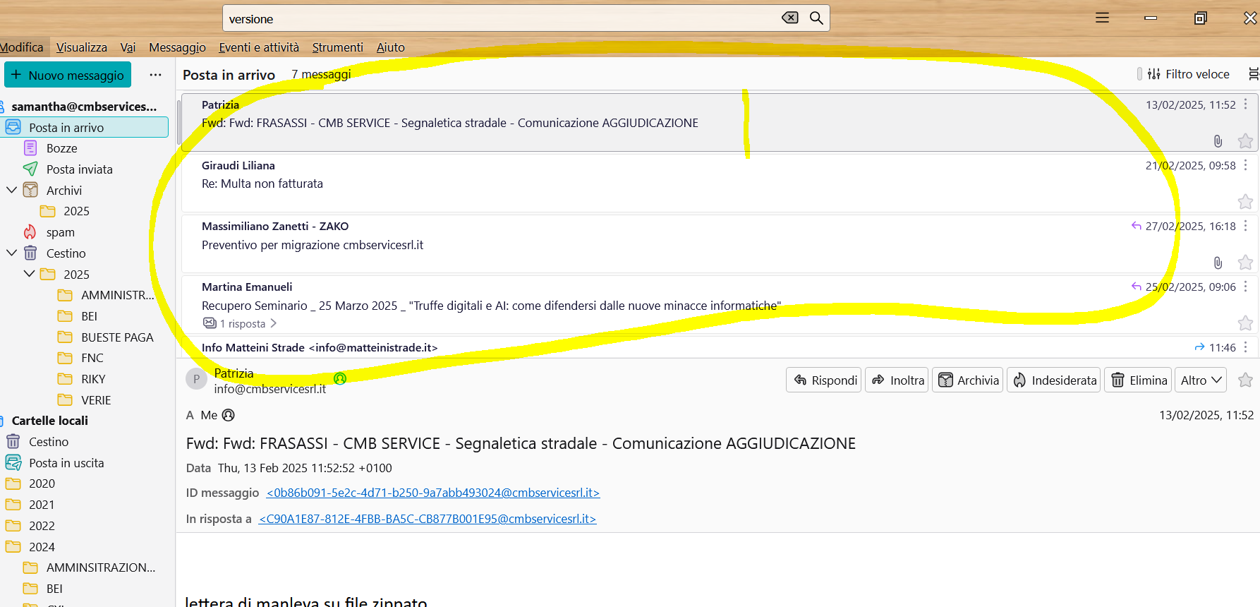 Come si riporta la lista delle mail in arrivo più piccola? Ora è molto grande Vedi allegato