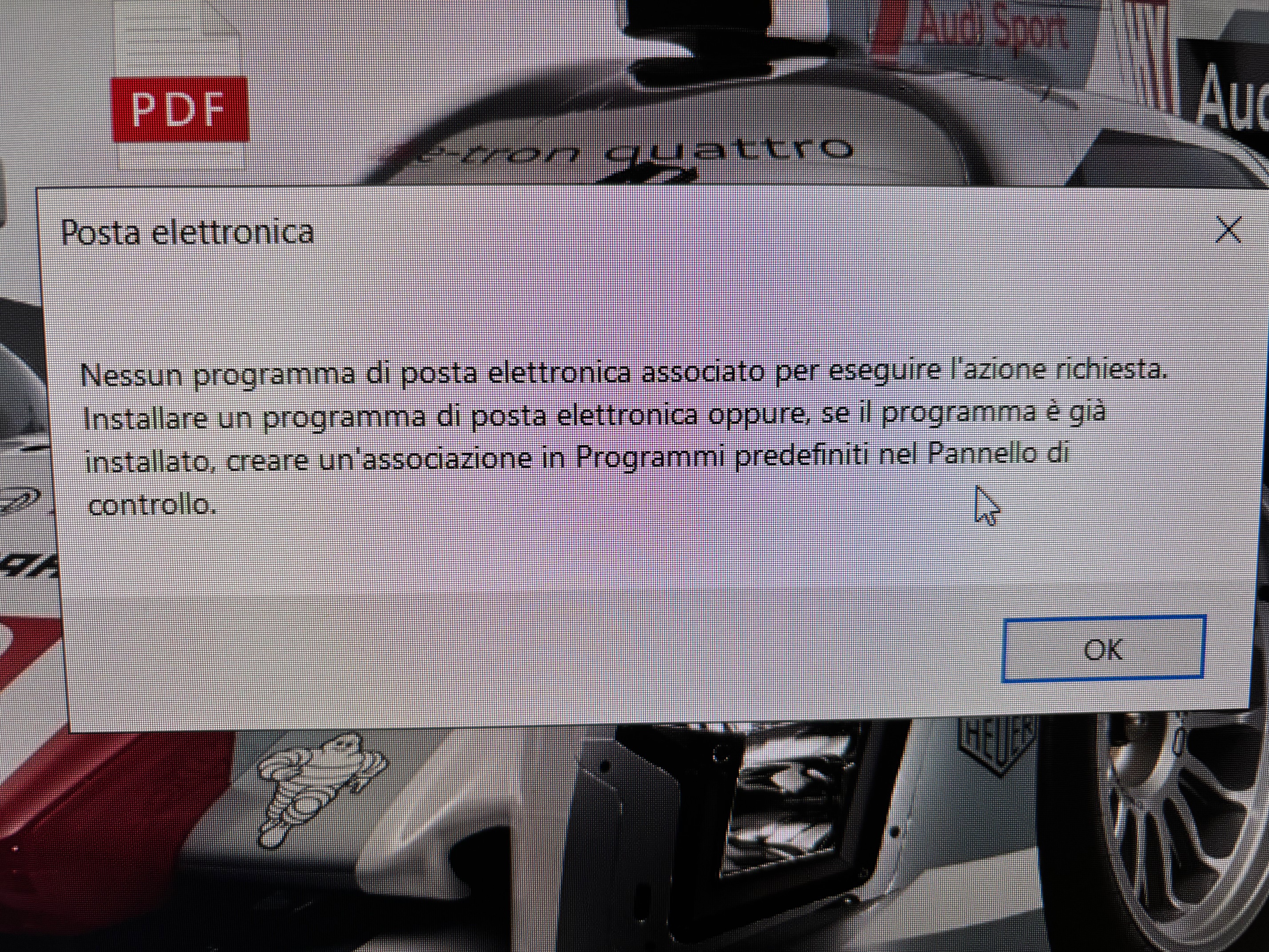 buongiorno ho un problema ad inviare e mail praticamente se voglio inviare file tipo foto pdf mi appare la dicitura nessun programma di posta elettroni associato per eseguire l azione richiesta se il programma e gia installato creare un associazione in programmi predefiniti nel pannello di controllo