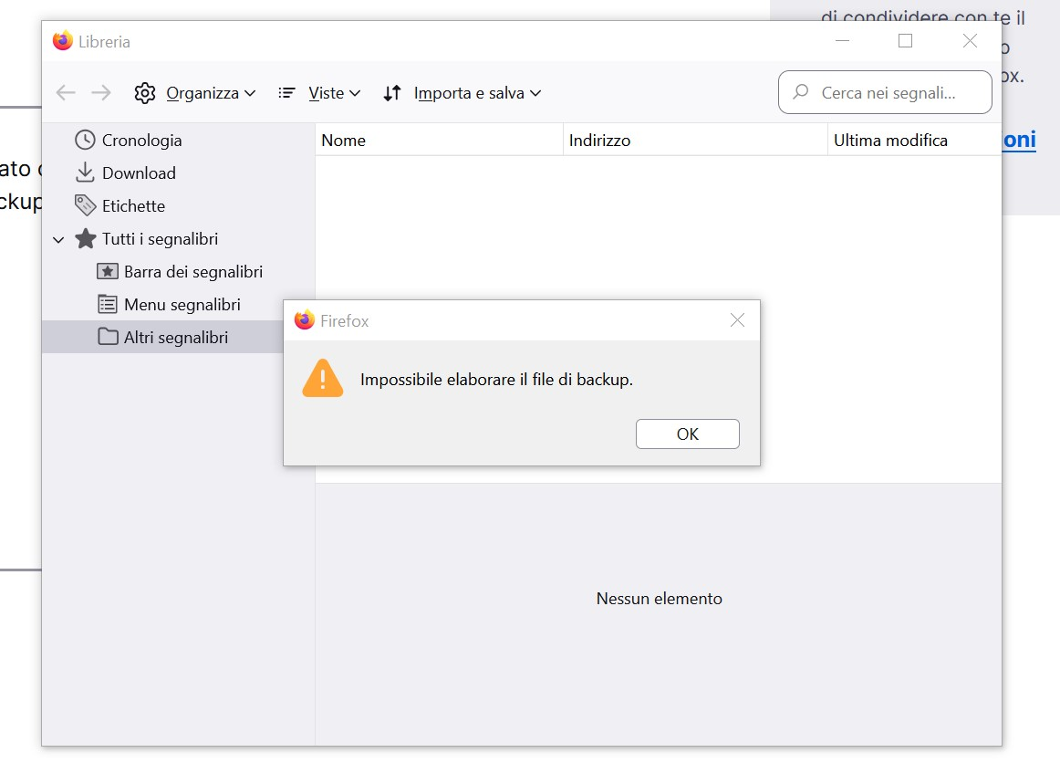 Buongiorno non vedo più i segnalibri salvati nonostante io sia sempre stato connesso con lo stesso nome utente. Non so per quale motivo ma non mi permette di caricare nessun backup precedente. Help!