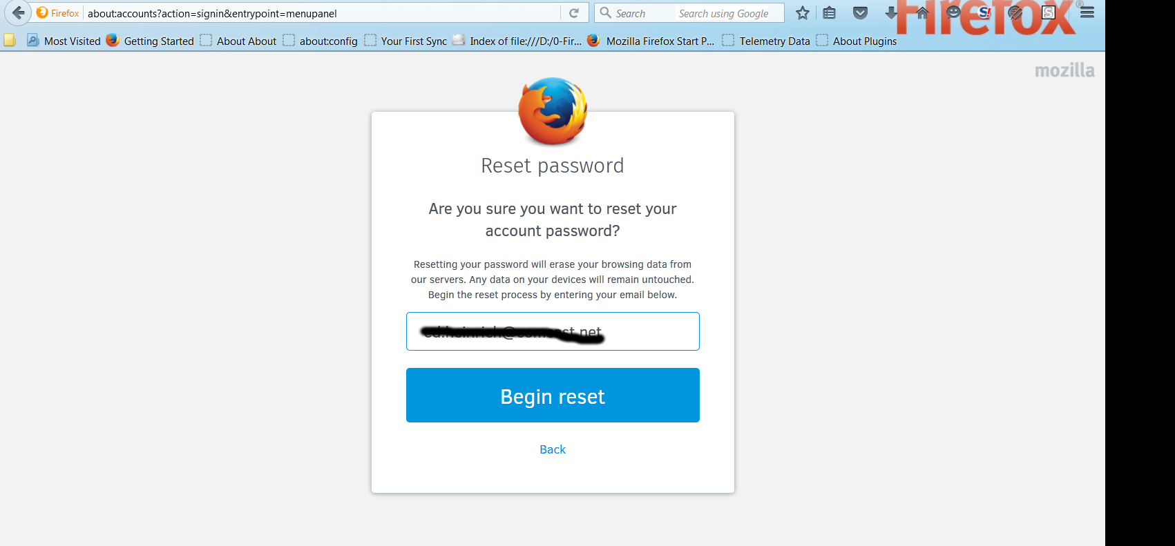 "Resetting your password will erase your browsing data from our servers. Any data on your devices will remain untouched."
