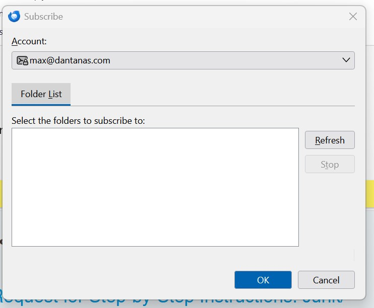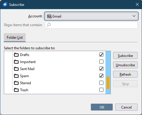 If you right-click on max@dant... in your picture, Subscribe, is there a Spam entry in the list of folders to subscribe?
