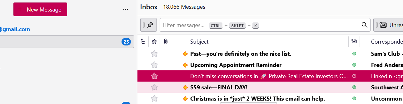 Thunderbird highlighting of message