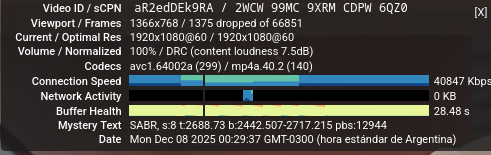 Hello everybody, i hope you are having a great day!. I have a problem with Youtube about the frames drops, in 1080p60fps i have drops but in 1080p normal don't. For system operative i'm using Fedora 43. And the Firefox version is the 145.0.1 64 bits. My specs are low: Intel i5 6200u with his integrated graphics (Intel HD 520) Already installed the extension h264ify, and i think i have all the correct drivers and codecs from the rpmfusion (ffmpeg, mesa freeworld) If u need more detail and information i can give it to you. Thanks for anyone that is interested in help me.