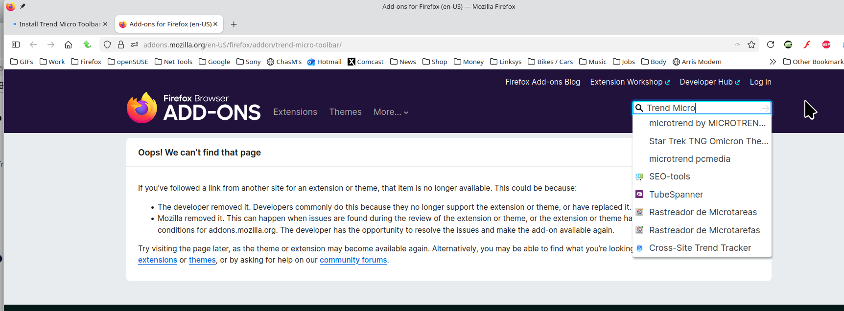 Nothing from Trend in the Firefox Add-on store. So that means that they have most likely broken some privacy rule. see screenshot