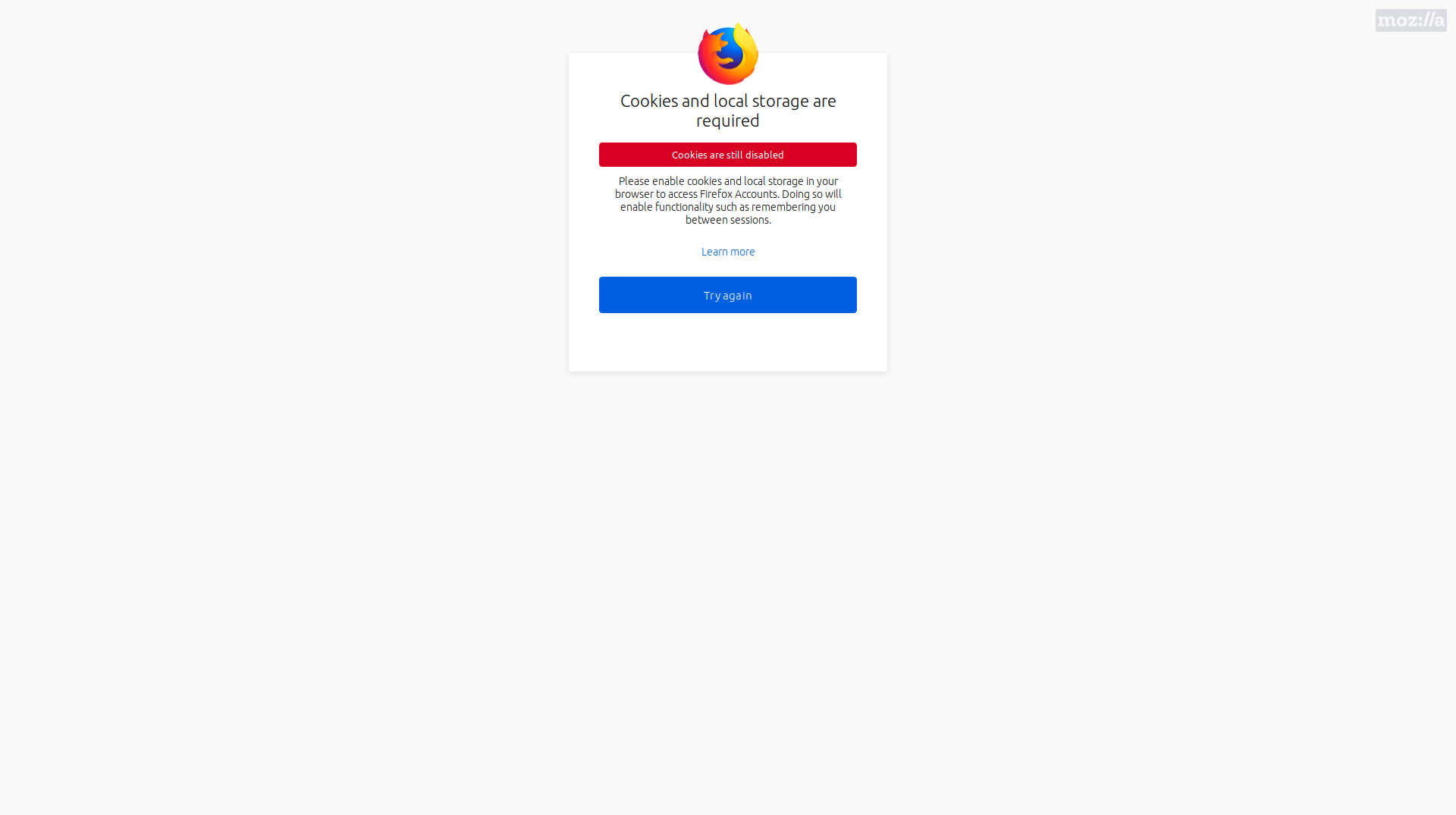Finally, while trying to find this support page, I tried to login to the normal firefox account page which resulted in a " Cookies and local storage are required Cookies are still disabled " error which is pretty weird as I DO NOT have cookies disabled. The settings are almost vanilla.