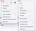 /* Content Area Context Menu - Navigation Vertical Text */ #context-navigation, #context-navigation > menuitem{ flex-direction: column !important; } /* hide images */ #context-back, #context-forward, #context-reload, #context-stop, #context-bookmarkpage { --menuitem-icon: none !important; } /* show text labels */ #context-back:after, #context-forward:after, #context-reload:after, #context-stop:after, #context-bookmarkpage:after{ content: attr(aria-label) !important; align-items: self-start !important; padding-left: 1em !important; }