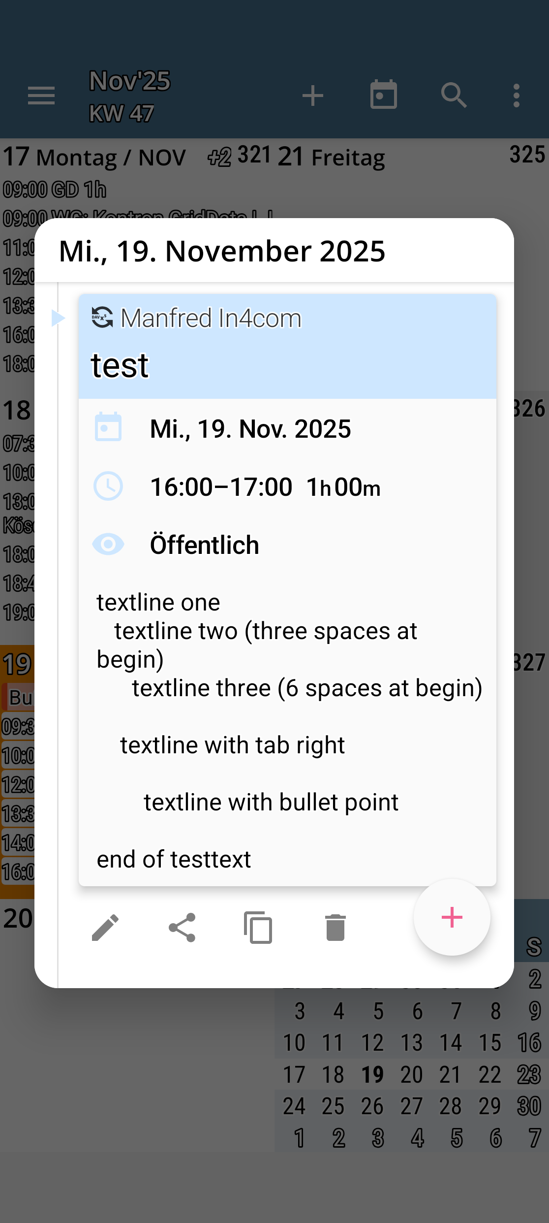 when starting a new calendar entry, this may look like this: textline one