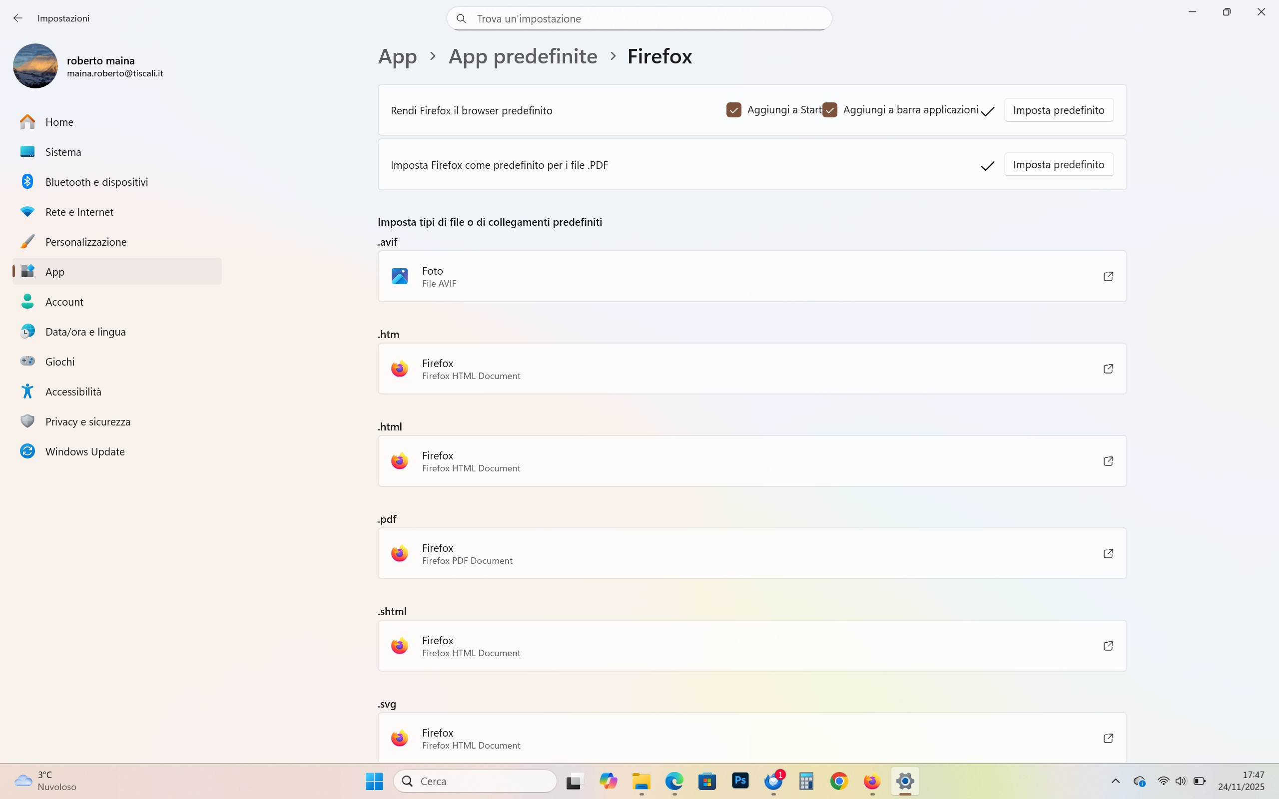 Buongiorno. Ricevo mail con link esterni, a file su youtube o altri siti. NON si apre il link. Ho provato a cambiare il browser predefinito. Mi sembra che non sia mantenuta la definizione di predefinito sul browser scelto. Nell'immagine riportata sotto seleziono il bottone "imposta predefinito" in alto a destra. Quando rientro sulla stessa schermata non viene indicato il browser selezionato. Cosa sbaglio ? cos'altro posso fare ? grazie