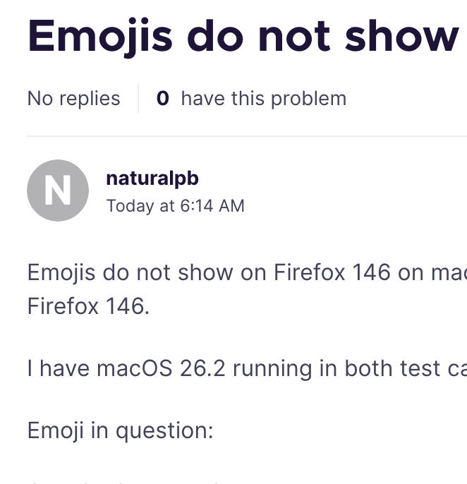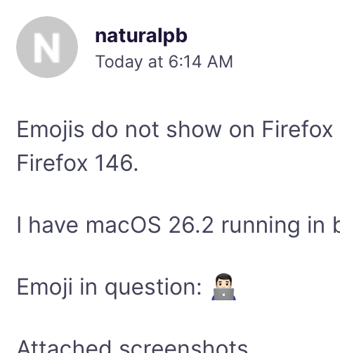 Emojis do not show on Firefox 146 on macOS