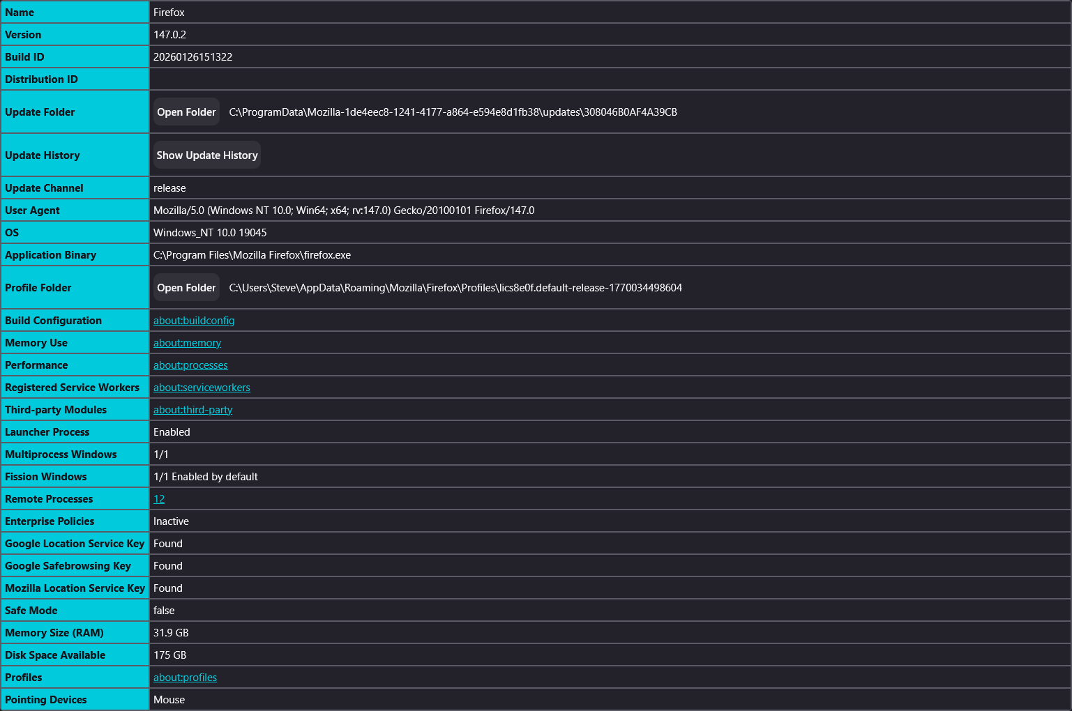 Unable to copy text from Firefox browser. This includes copying from the body of a webpage, webpage URL in the address bar and "about:support" Troubleshooting information.