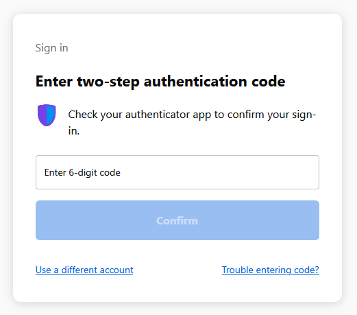 Enter two-step authentication code Check your authenticator app to confirm your sign-in.?