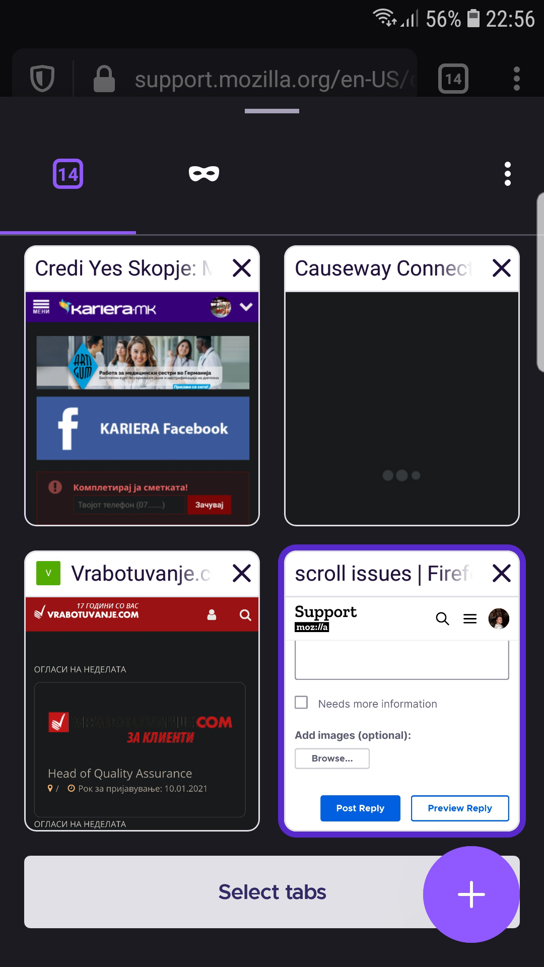 I have a screw issues using infinica new tab from my history,tabs are frouzen,dont go up or doun