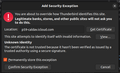 I can not close the dialog box with x in top-right corner, not Cancel, not Confirm Security Exception.