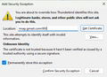 Installing Thunderbird email, can't get past "Add Security Exception" error.